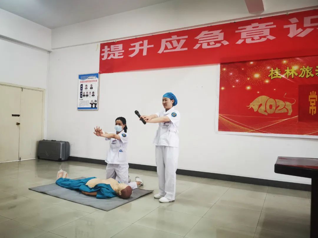 为推进党史学习教育“我为群众办实事”主题实践活动深入开展,提高广大公众对心肺复苏知识的知晓率,鼓励更多人参与学习、掌握心肺复苏这项必备的技能。近日,桂林市妇幼保健院副院长马丽带领门急诊支部走进桂林市汽车旅游公司开展“我为群众办实事、急救科普暖人心”健康义诊宣传活动,让更多人掌握“心肺复苏”及外伤处理的技能。